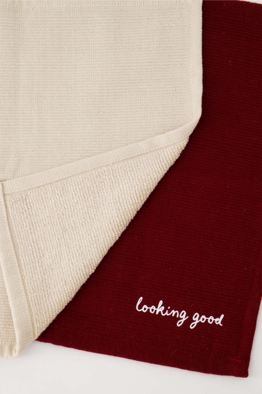OverzichtDeze combinatie van twee vrolijke vaatdoekjes is afkomstig uit de koken & tafelen collectie van het merk Zusss. Een vaatdoekje is zandkleurig en daarop staat hartje. Het andere vaatdoekje is portkleurig en daarop staat looking good. De doekjes zijn gemaakt van 100% katoen. Tip: combineer deze set met de bijpassende Zusss koken & tafelen artikelen.