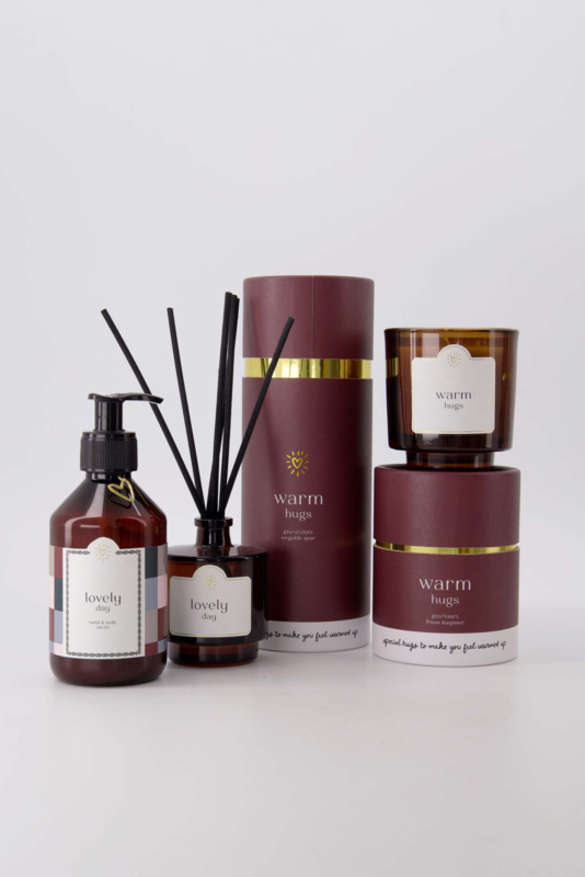 OverzichtDeze geurkaars in glas komt uit de nieuwe badcollectie van het merk Zusss. De kaars zit verpakt in een bruin glas. Op het glas zit een wit etiket met daarop met 'warm hugs' gedrukt in mooie sierletters. Daaromheen zit een mooie koker in donkerrood met goud en ook daarop staat 'warm hugs'. Door deze mooie verpakking en het mooie etiket is de kaars een heel leuk om cadeau te geven. De geurkaars verspreidt een heerlijke frisse geur, dus dat wordt genieten dit najaar!
