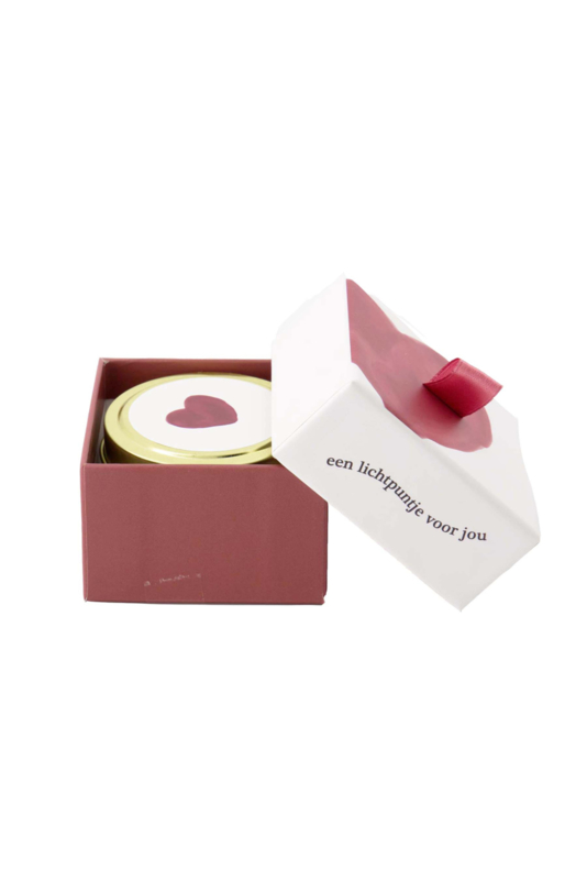 Geurkaarsje tinnen in doosje lichtpuntje - wit/rood | Zusss