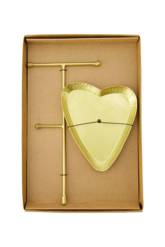 OverzichtDit fijne sieraden rekje komt uit de nieuwe collectie van Zusss. Een goudkleurige metalen staandaard staat op een hartvormig schaaltje. Je kettinkjes en armbanden hang je aan de standaard en je oorbellen leg je in het schaaltje. Een sieraad voor op je toilettafen en ook nog eens heel functioneel. Het sieraden rekje zit verpakt in een leuk cadeaudoosje en je zet het zelf eenvoudig in elkaar.