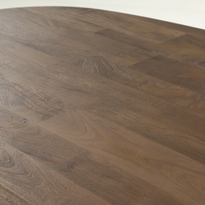 Deze eettafel Tycho heeft de volgende afgmetingen: 210x110x77 cm (BxDxH) en de dikte van het blad is 4 cm. De hoogte tot aan de regel is 73 cm. Het mangohout heeft een geborstelde afwerking en kan hierdoor gemakkelijk worden schoongemaakt met een licht vochtige/droge doek. Echter raden wij het gebruik van onderzetters wel altijd aan.