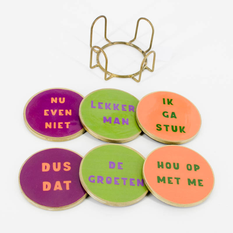 OZ3310 | Set van 6 onderzetters met rekje - lekker man | HomeBound by KY