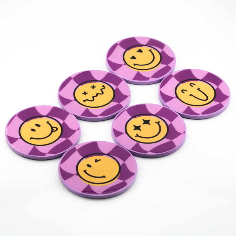 OZ3315 | Set van 6 onderzetters met rekje - smiley | HomeBound by KY