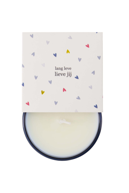 OverzichtDeze geurkaars in wikkel komt uit de nieuwe cadeau collectie van het merk Zusss. De kaars zit verpakt in een glaasje met daarom heen een witte wikkel. Op de wikkel staan allemaal vrolijke gekleurde Zusss hartjes met in het midden de mooie tekst 'lang leve lieve jij'. Op het blauwe glaasje staat met witte sierletters hoera. Door deze mooie wikkel en tekst is de kaars een heel leuk om cadeau te geven. De geurkaars verspreidt een heerlijke frisse geur wanneer je hem brand.