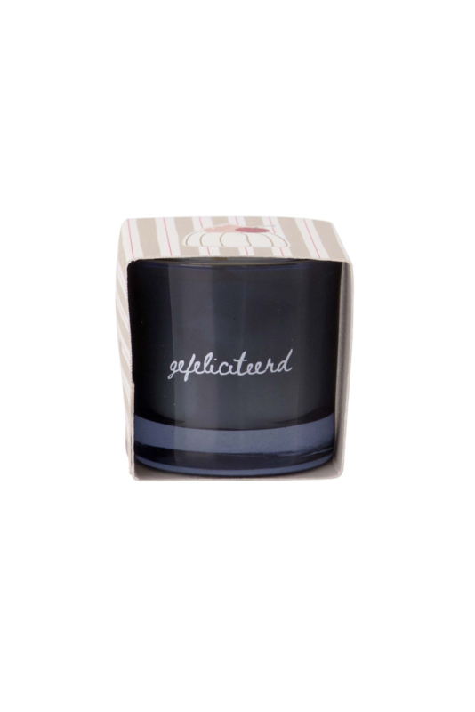 OverzichtDeze geurkaars in wikkel komt uit de cadeau collectie van het merk Zusss. De kaars zit verpakt in een glaasje met daarom heen een gestreepte wikkel. Op de wikkel staat een taartje en op het donkerblauwe glaasje staat met witte sierletters gefeliciteerd. Door deze mooie wikkel is de kaars ook super leuk om cadeau te geven. De geurkaars verspreidt een heerlijke frisse geur wanneer deze brand!