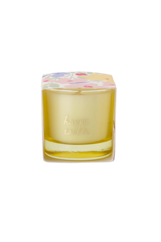 OverzichtDeze geurkaars in wikkel komt uit de cadeau collectie van het merk Zusss. De kaars zit verpakt in een goudgeel glaasje met daarom heen een kleurrijke wikkel met een bloempatroon. Op het glas staat de mooie tekst 'happy easter'. Door deze mooie wikkel is de kaars ook super leuk om cadeau te geven met pasen. De geurkaars verspreidt een heerlijke frisse geur wanneer deze brand!
