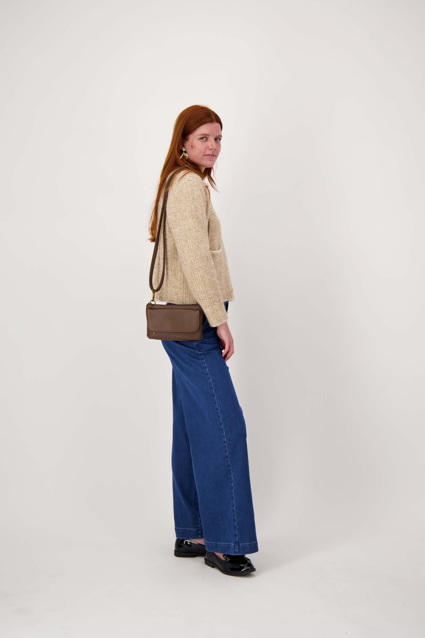 Schoudertas met flap en kwastje - midden bruin | Zusss