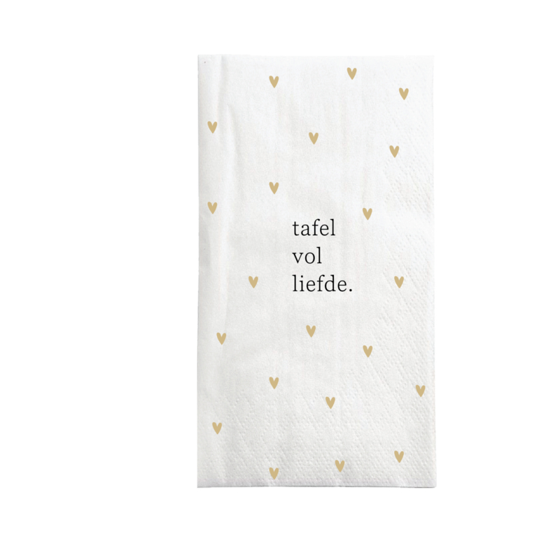 Servetten hartjes tafel vol liefde 11x20cm - wit/oker | Zusss