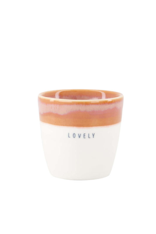 OverzichtGeniet van een lekker kopje espresso met deze toffe espressomok van Zusss in een hele nieuwe stijl! Dit mokje is gemaakt van aardewerk en is wit aan de onderkant en donkerroze aan de bovenkant. Op de voorkant staat 'lovely'. De espressomok heeft een inhoud van 100 ml. Door de lieve tekst is dit mokje ook super leuk om cadeau te geven!