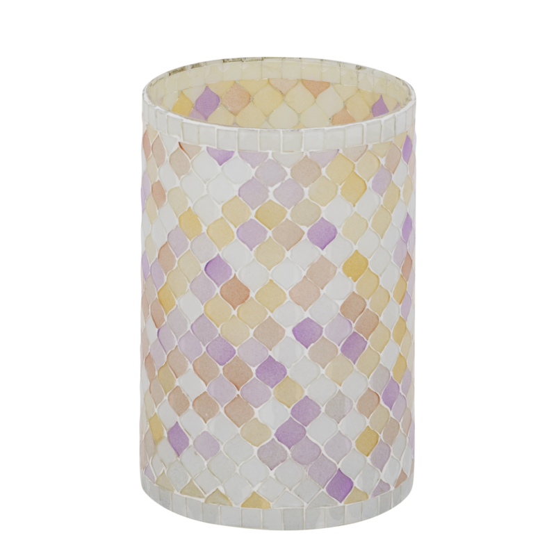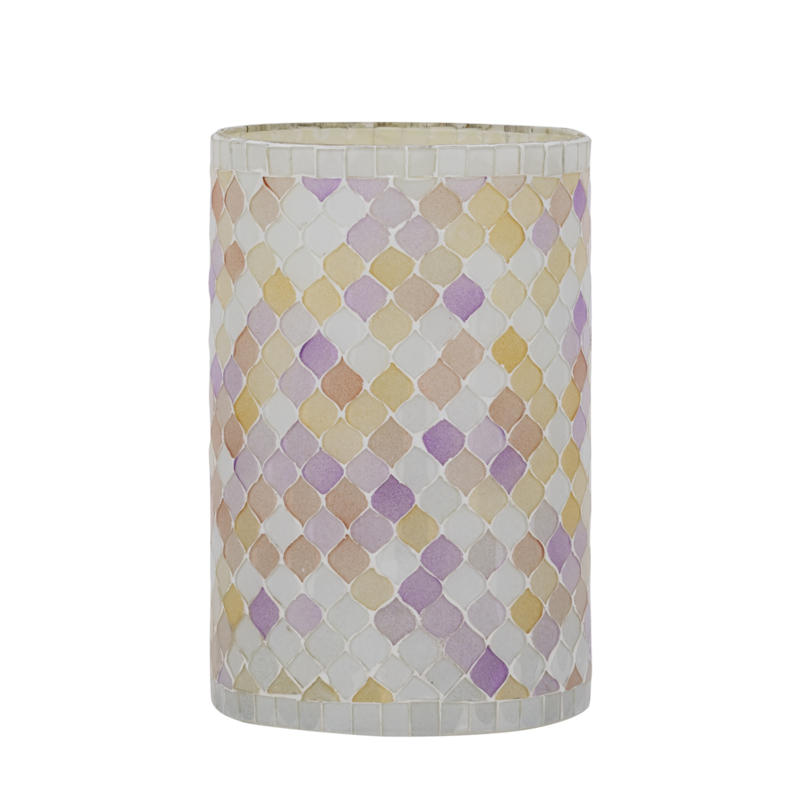 OverzichtWindlicht Zadie komt uit de collectie van het merk PTMD. Het sfeervolle theelicht is gemaakt van glas, ingelegd met mozaïk in lichte pasteltinten. Het windlicht is verkrijgbaar in drie maten en schijnt prachtig met een brandend theelicht of stompkaars erin.