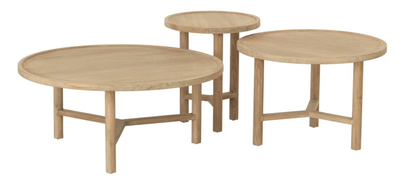 Deze kleine ronde salontafel Forte is helemaal gemaakt van gerecycled teakhout in een lichte naturel kleur. De tafel heeft 3 masief houten poten die het tafelblad dragen. Deze poten zijn ook aan de onderkant met elkaar verbonden wat ervoor zorgt dat deze salontafel extra stevig staat. Het masieve houten blad heeft een licht opstaande rand.  De salontafel heeft de volgende afmetingen: 45xØ40 cm. Van salontafel Forte zijn ook nog 2 grotere maten verkrijgbaar zodat er eventueel een set te vormen is.