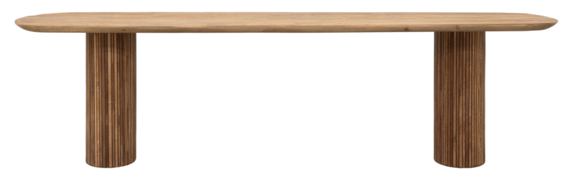 OverzichtDeze prachtige eettafel is afkomstig uit de Lagoon collection van DTP Home. Het Deens ovale blad is gemaakt van gerecycled teakhout en rust op twee masieve eveneens ovalen poten. Ook de poten zijn gemaakt van gerecycled teakhout met een verticaal ribbelpatroon erin. Eettafel Lagoon heeft een mooie natuurlijke houtkleur.