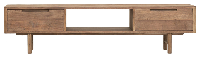 OverzichtDit TV meubel is afkomstig uit de Bliss collection van DTP Home. Dit meubel is helemaal gemaakt van gerecycled teakhout in een lichte naturel kleur. De natuurlijke rustige uitstaling maakt dit deels open TV meubel makkelijk te combineren is verschillende interieurstijlen. Deze uitvoering heeft de volgende afmetingen: 40x160x30 cm (HxBxD) en is voorzien van 2 lades en 1 open vak. Hiermee bied TV meubel Bliss voldoende ruimte voor het plaatsen van de nodige apparateur en de nodige bergruimte.