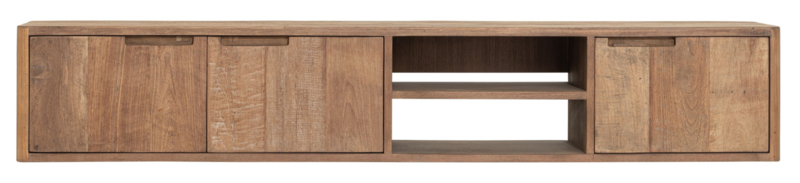 OverzichtDit TV meubel is afkomstig uit de Bliss collection van DTP Home. Dit meubel is helemaal gemaakt van gerecycled teakhout in een lichte naturel kleur. De natuurlijke rustige uitstaling maakt dit deels open TV meubel makkelijk te combineren is verschillende interieurstijlen. Deze uitvoering heeft de volgende afmetingen: 30x170x35 cm (HxBxD) en is voorzien van 3 deuren en 2 open vakken. Hiermee bied TV meubel Bliss voldoende ruimte voor het plaatsen van de nodige apparateur en de nodige bergruimte.