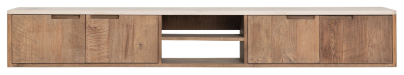 De natuurlijke rustige uitstaling maakt dit deels open TV meubel makkelijk te combineren is verschillende interieurstijlen. Deze uitvoering heeft de volgende afmetingen: 30x210x35 cm (HxBxD) en is voorzien van 4 deuren en 2 open vakken. Hiermee bied TV meubel Bliss voldoende ruimte voor het plaatsen van de nodige apparateur en de nodige bergruimte.