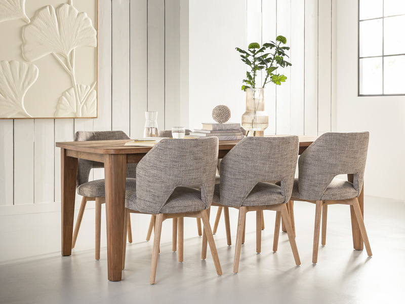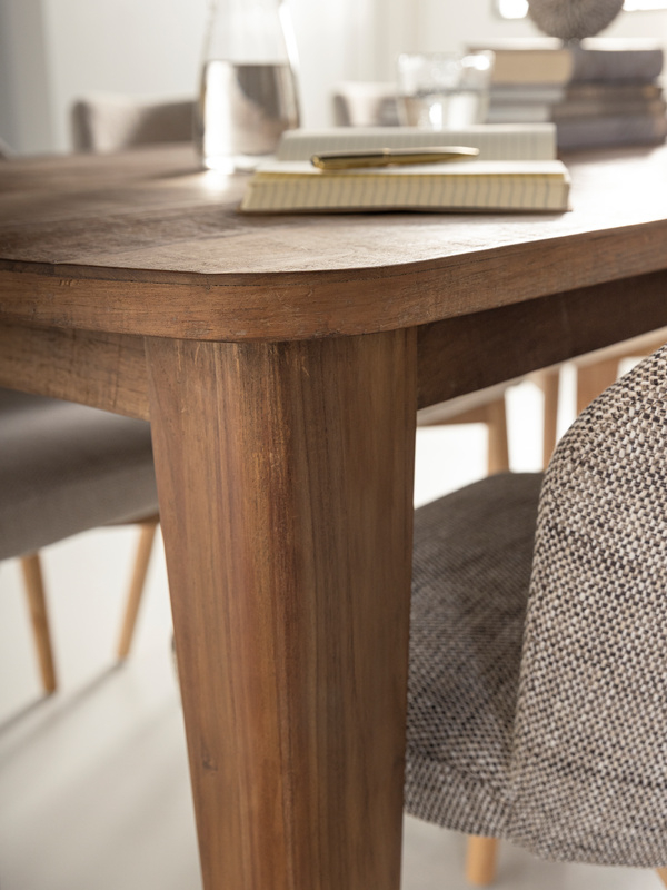 OverzichtDeze rechthoekige eettafel Bliss is afkomstig uit de Bliss collectie van DTP Home. De eettafel is helemaal gemaakt van gerecycled teakhout in een lichte naturel kleur. De tafel heeft 4 masief houten poten die het tafelblad dragen. Aan de onderkant van het blad zit een houten rand die de poten nogmaals met elkaar verbind. Het masieve houten blad is 275 lang en 100 cm breed en het blad heeft afgeronde hoeken. Ook de buitenkant van de poten is afgerond. Uit de Bliss serie zijn ook salontafels en verschillende kasten verkrijgbaar, zodat je eventueel een set kunt vormen.