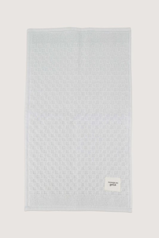 OverzichtDit mooie gastendoekje komt uit de nieuwe collectie van het merk Zusss. Het handdoekje is grijsblauw van kleur en met relief is er een ruitpatroontje in te zien. Op een wit etiket in een hoekje staat met sierletters: momentje van geluk. Het gastendoekje is gemaakt van 100% katoen en heeft de maat 30x55 cm. Het herkenbare Zusss logo vind je terug in de hoek en op de lus waarme het doekje op te hangen is.