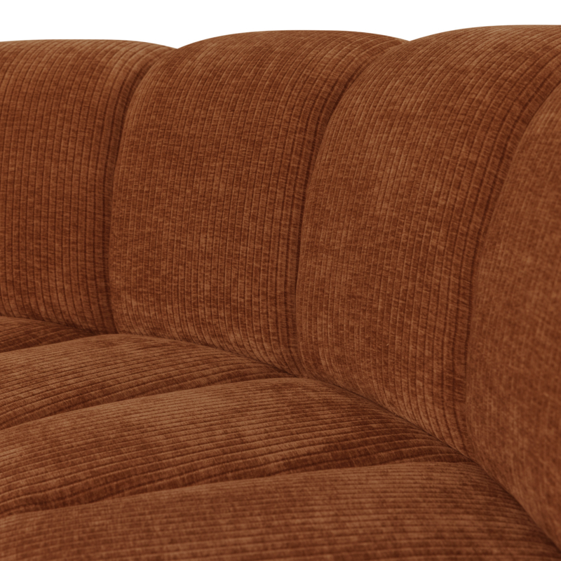 377902- R | Mojo eetbank half ronde hoek met rugleuning - rib roestbruin | WOOOD