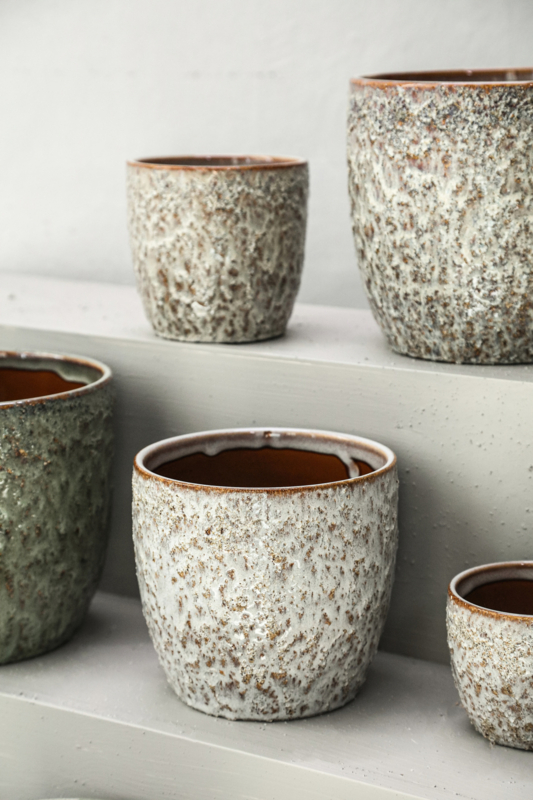 OverzichtPot Rebecca is afkomstig uit de collectie van het Nederlandse merk PTMD. Dit crèmekleurige bloempotje is gemaakt van keramiek en heeft een ruwe structuur.