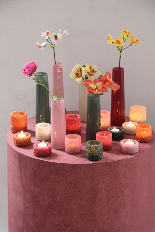OverzichtTheelicht Marsella komt uit de collectie van het merk PTMD. Het sfeervolle waxinelichtje is gemaakt van glas en heeft een ruw kristal effect. Het houdertje is verkrijgbaar is verkrijgbaar in diverse kleuren en maten.