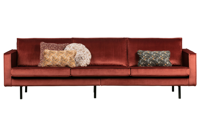 OverzichtDe nieuwe serie Rodeo van BePureHome is modern, stoer en eigentijds. Deze 3-zits bank is royaal, biedt volop zitruimte en beschikt over een zachte velvet stof. Dankzij haar slanke frame en losse kussens toont de bank subtiel in de living. De poten zijn van zwart metaal. De zithoogte is 45 cm, de zitdiepte is 60 cm en de hoogte van de armleuningen is 68 cm.
