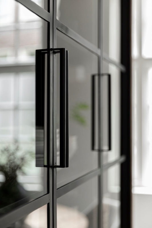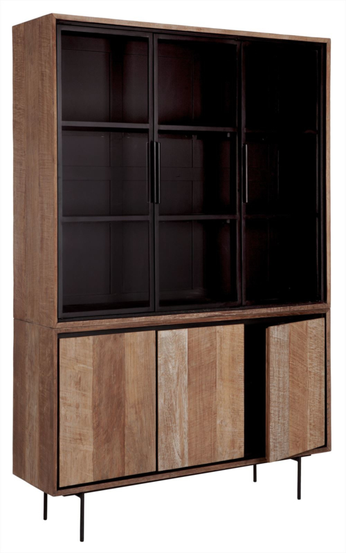 OverzichtDeze adembenemende vitrinekast is afkomstig uit de Metropole Collection van DTP Home. De kast is gemaakt van gerecycled teakhout in combinatie met glas en metaal. Deze vitrinekast is voorzien van 3 gesloten en 3 glazen deuren. Het open deel met de glazen deuren heeft een zwarte binnenkant, dit is de perfecte achtergrond voor decoratieve objecten of voor je favoriete servies. De kast is hier uitgevoerd in de maat: 210x140x40 cm (HxBxD) De kasten in deze collectie hebben een onderstel van dunne, ronde poten en handvaten in dezelfde stijl.