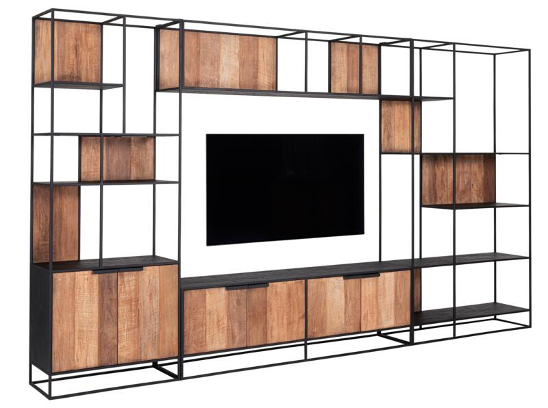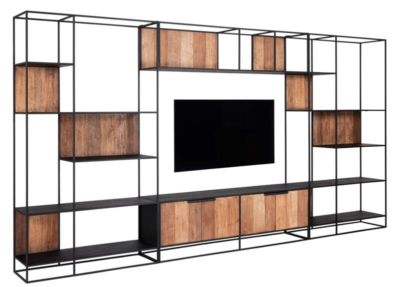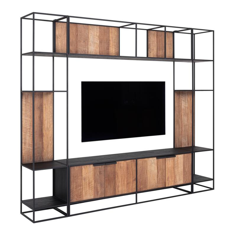 OverzichtStel zelf de ideale wandkast samen met de wandrekken en -kasten uit de Cosmo collectie van DTP Interiors. Met de verschillende elementen maak je de tv-wandkast zo groot als je zelf wilt. De kastelementen zijn gemaakt van gerecycled teakhout met zwart metalen details. Het teakhout krijgt karakter en een robuuste uitstraling dankzij de kleine nerven en barsten. Daarbij kenmerkt de Cosmo collectie zich door de stoere zijkanten, die zijn afgewerkt met een zwarte beits.