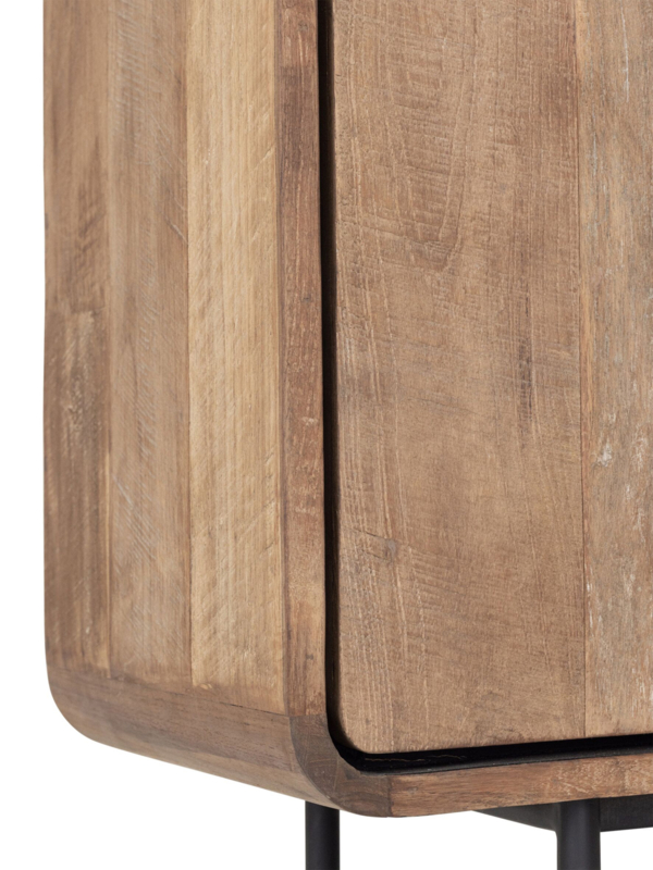 OverzichtDeze adembenemende vitrinekast is afkomstig uit de Evo Collection van DTP Home. De kast is gemaakt van gerecycled teakhout in combinatie met glas en metaal. Deze vitrinekast is voorzien van 4 gesloten en 4 glazen deuren. Het open deel met de glazen deuren heeft een zwarte binnenkant met 4 planken. Dit is de perfecte achtergrond voor decoratieve objecten of voor je favoriete servies. De kast is hier uitgevoerd in de maat: 220x160x40 cm (HxBxD) De kasten in deze collectie hebben een onderstel van dunne, ronde poten en handvaten in dezelfde stijl. Alle hoeken zijn afgerond, wat kenmerkend is voor de Evo serie, en deze serie ook net even anders maakt.