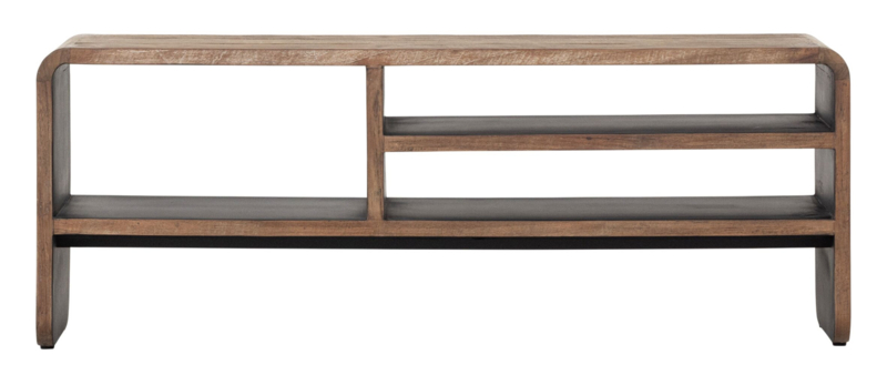 OverzichtDit prachtige TV meubel is afkomstig uit de Evo Collection van DTP Home. Dit televisiemeubel is helemaal gemaakt van gerecycled teakhout in een naturel tint, met aan de binnenkant een zwarte afwerking. Het meubel is voorzien van 3 open vakken voor apparatuur of om gewoon decoratief in te richten. Het TV-meubel heeft de volgende afmetingen: 45x120x35 cm (HxBxD). Alle hoeken zijn afgerond, wat kenmerkend is voor de Evo serie, en deze serie ook net even anders maakt.