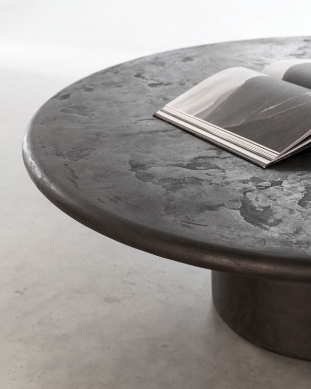 OverzichtDeze prachtige salontafel is afkomstig uit de Scala Collection van DTP Home. Het ronde blad in een donkere Pepper kleur rust op een ronde masieve poot. Zowel het tafelblad als de poten zijn gemaakt van Mortex, een nieuw materiaal wat steeds vaker te zien is in meubelstukken. Mortex bestaat voor 95% uit natuurproducten zoals mineralen, kalk en cement. Deze mix wordt handmatig aangebracht en hierdoor krijg je een unieke structuur en uitstraling, en een materiaal wat bijna net zo hard is als natuursteen. Elk meubelstuk vervaardigd uit Mortex is dan ook uniek.
